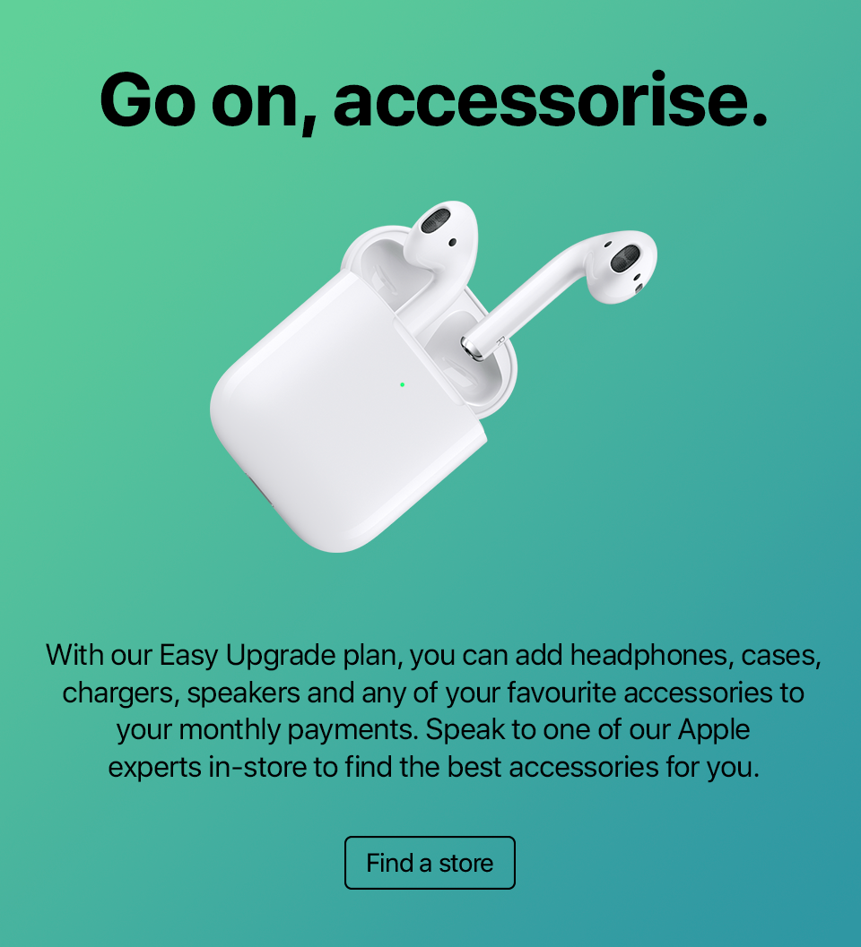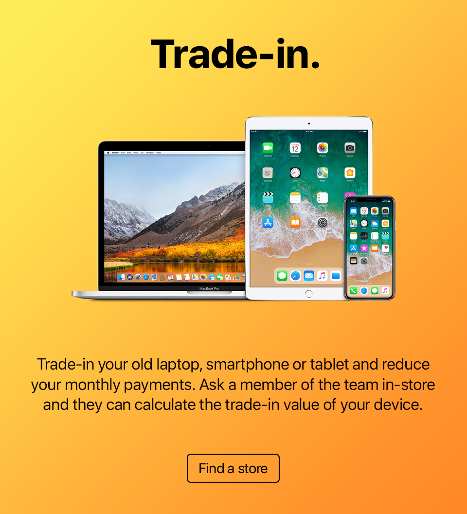 Choose your Apple device and accessories in-store with out team of Apple Experts. Select your preferred repayment term and review the upfront payment and monthly payment amount.