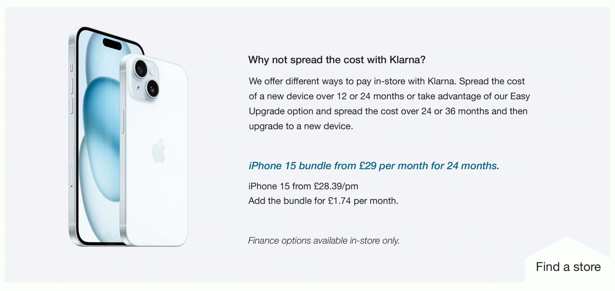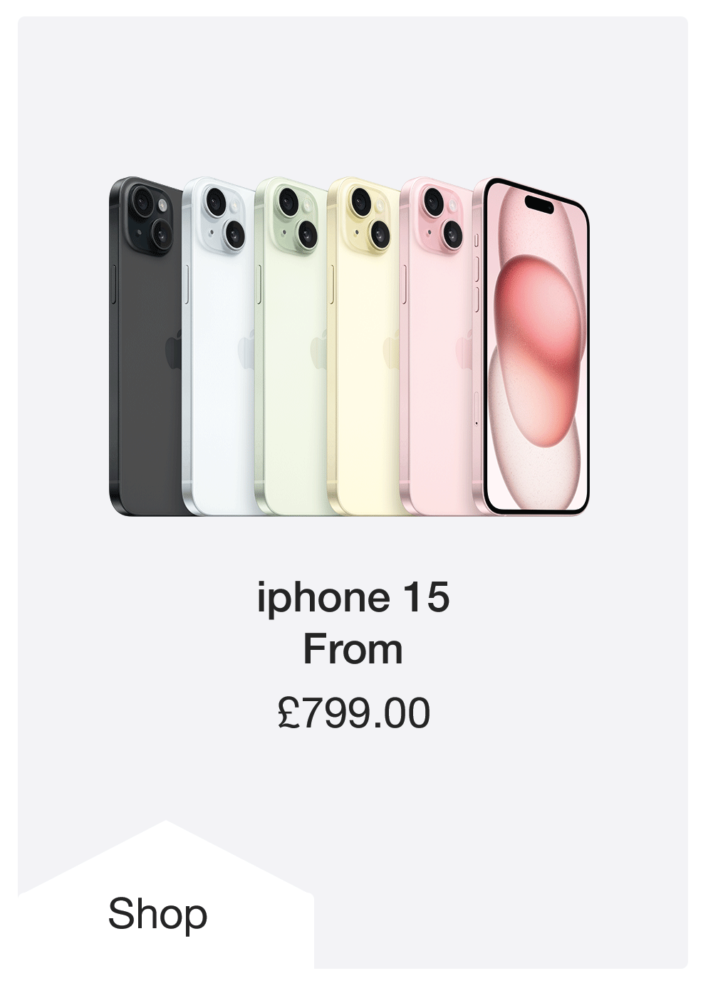 Make sure your new iPhone is fully protected and ready to go from the minute you leave the store with our bundle from £848. Includes iPhone 15, USB-C charge adapter, Belkin UltraGlass screen protector* and a 2 year guarantee.